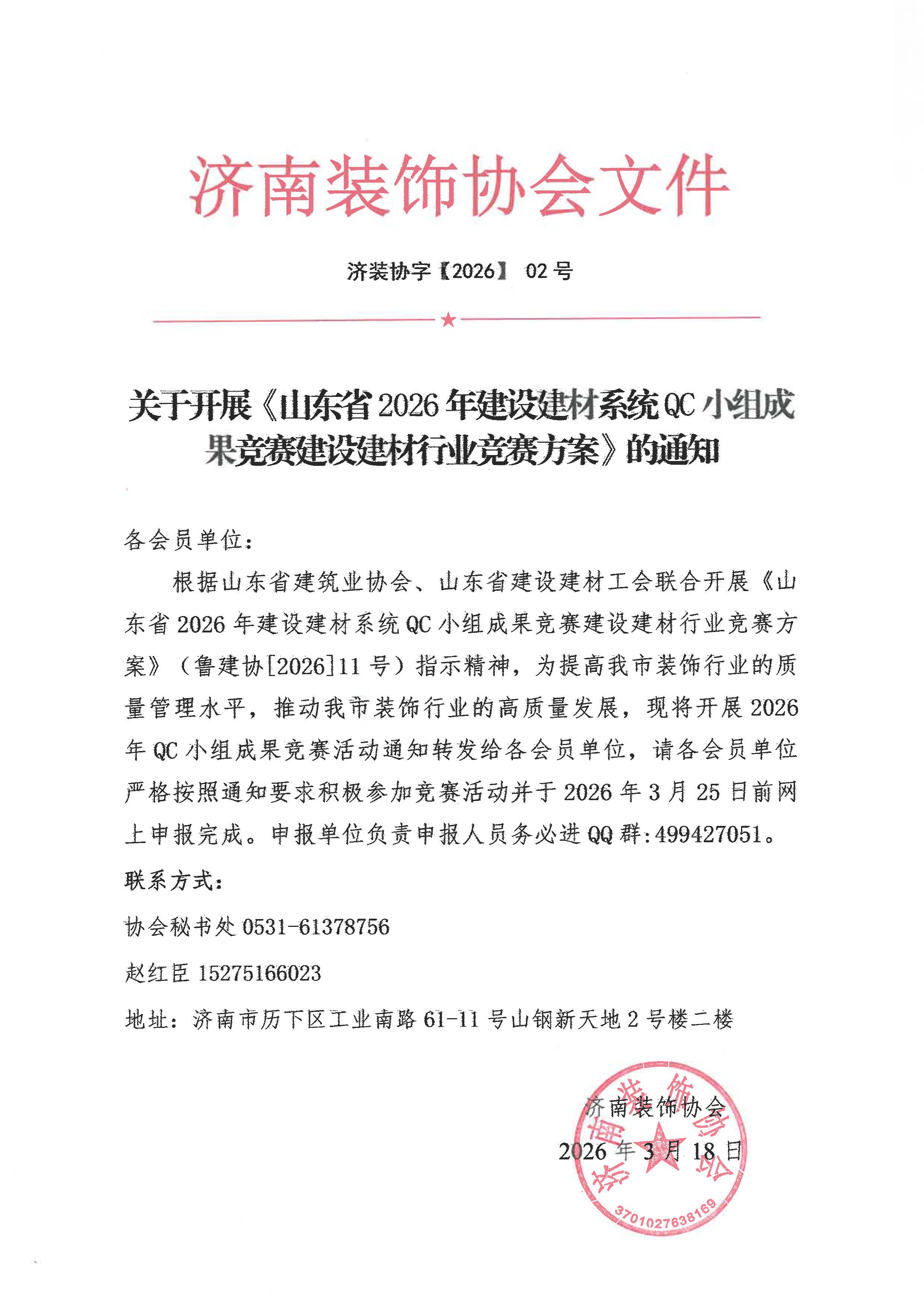通知:关于开展《山东省2026年建设建材系统QC小组成果竞赛建设建材行业竞赛方案》的通知
