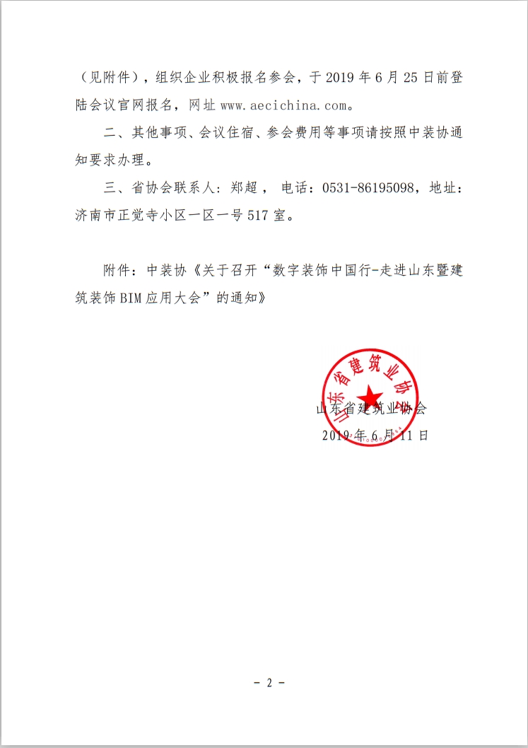 转发:山东省建筑业协会关于转发中装协 《关于召开“数字装饰中国行——走进山东 暨建筑装饰 BIM 应用大会”的通知》的通知